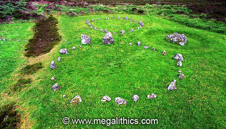 The two tall stones in the SE arc of circle G are thought to be an entrance,