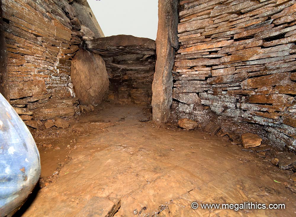 the four vertical slabs set into the chamber walls. Note the strata in the
